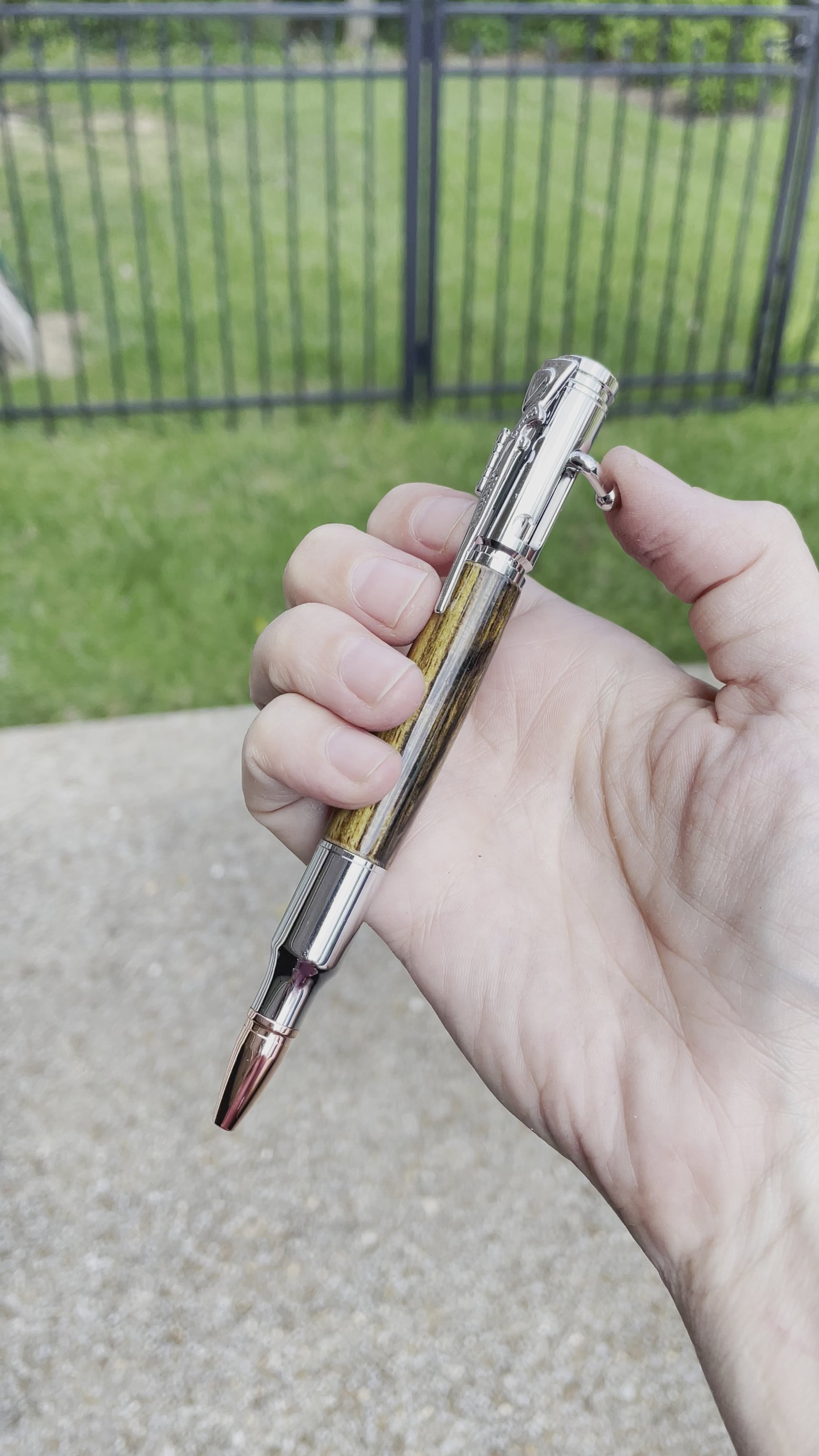 Looking for a gift that will wow the recipient? This is it! This bolt action pen with a black finish and claro walnut wood is perfectly showcased in the rifle case that comes with the pen. The unique bolt action mechanism adds charm to an already unique pen, and the rifle pen clip makes this beauty stand out. If you have a hunter or precision shooter in your life and don't know what to buy them, get them something that they can use every day!
