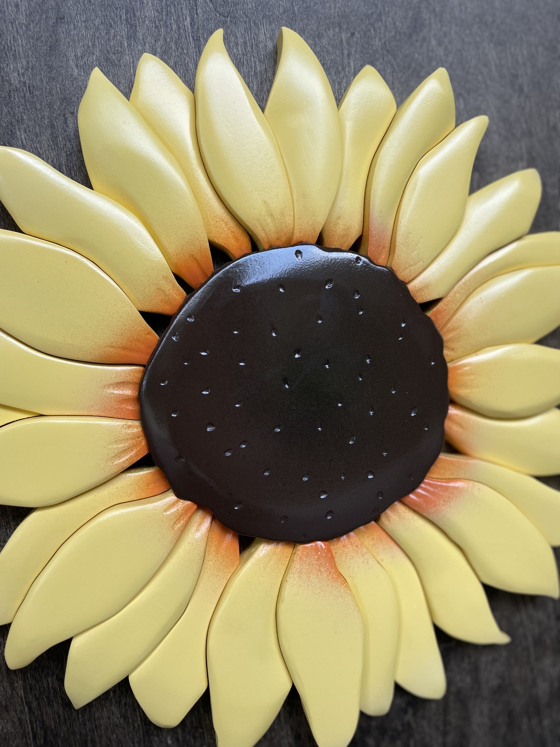 This wood wall art piece was designed, cut, carved, shaped, sanded, and assembled - all by hand and with the utmost attention to detail. The pop of color makes this piece stand out and offers a bright and happy presence, giving it the name "Light"This piece uses MDF as the main material that is hand cut on a scroll saw, shaped, sanded, primed, and carefully painted with vibrant colors.There is stain on the backer which is birch plywood. The total measurements of the piece are 19.5” in diameter x 1.25” deep.