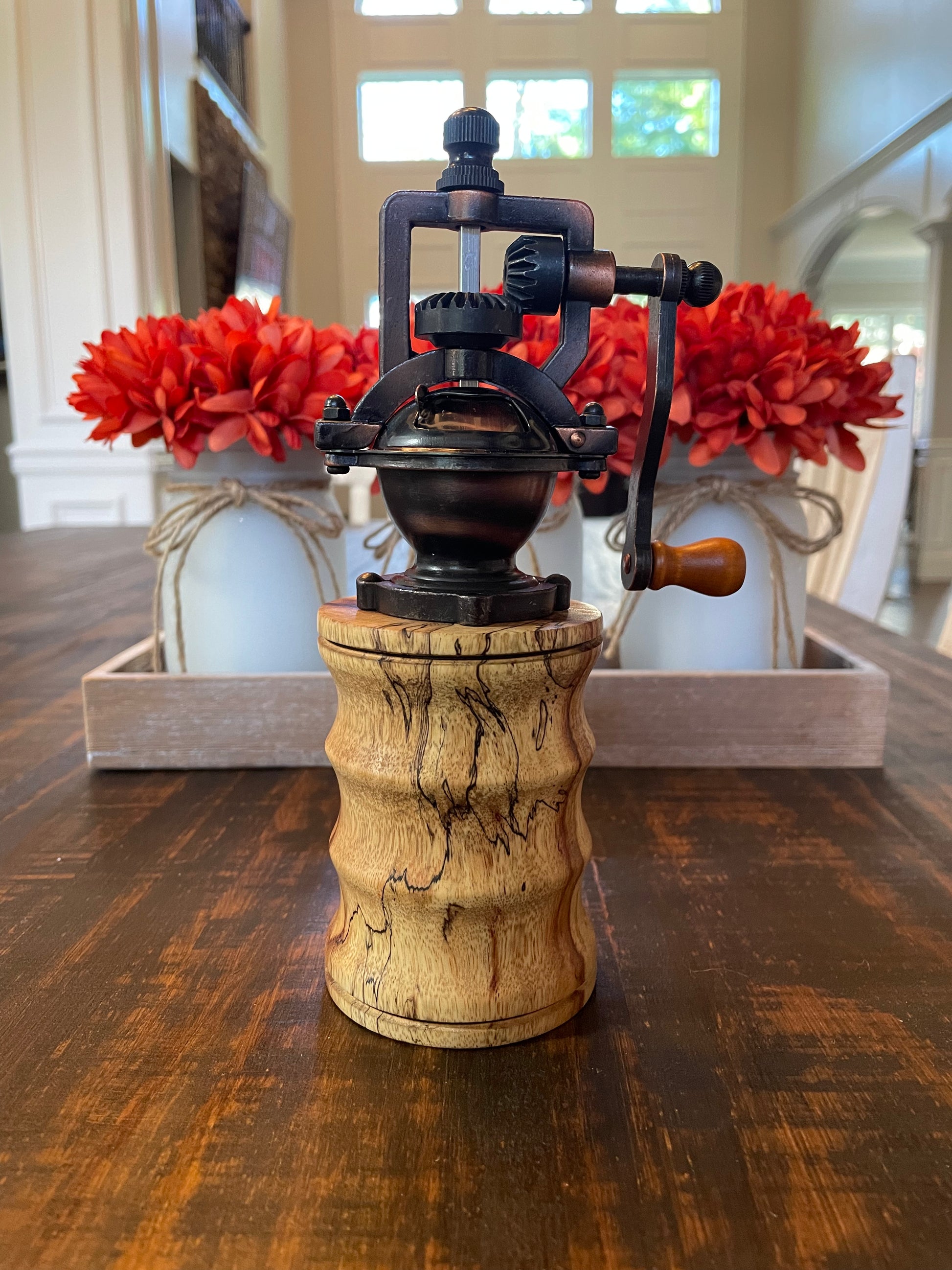 These beautiful Antique Style Pepper Mill/Salt Grinders in a copper finish are so much fun and full of unique character! The spalted tamarind wood holds a unique and rustic look that will “wow” in any kitchen. It dazzles and shines with a walnut oil and wax finish.