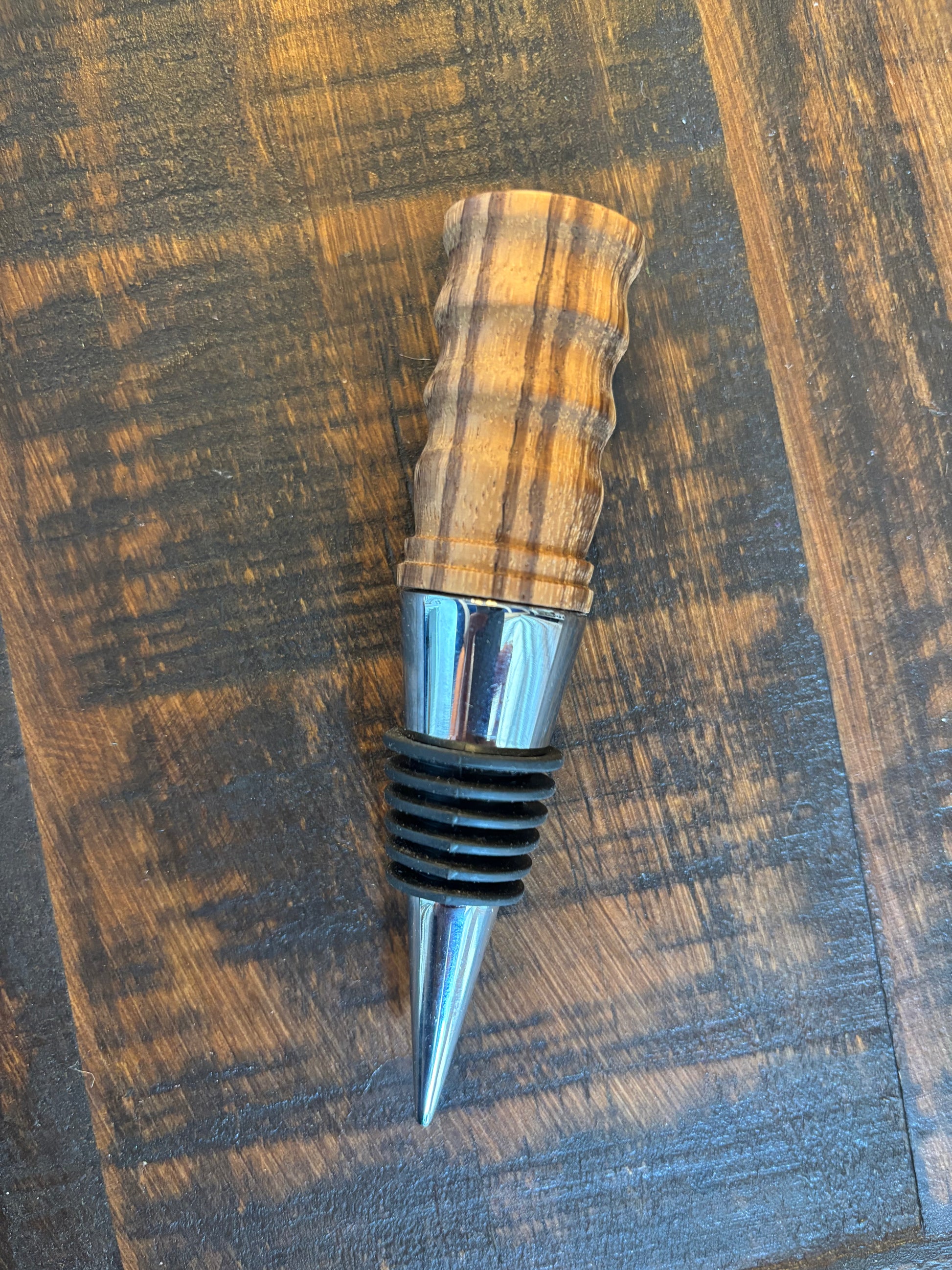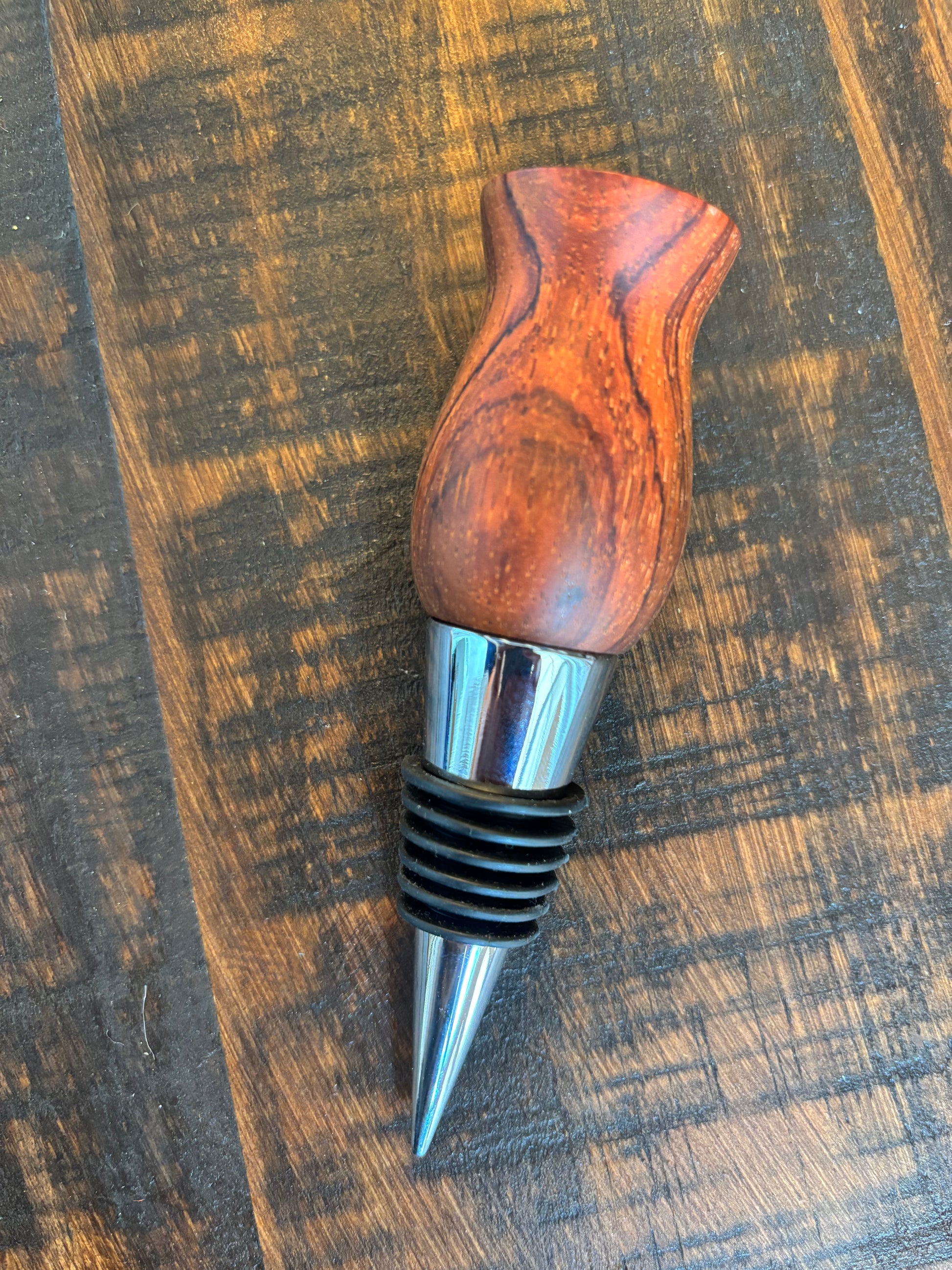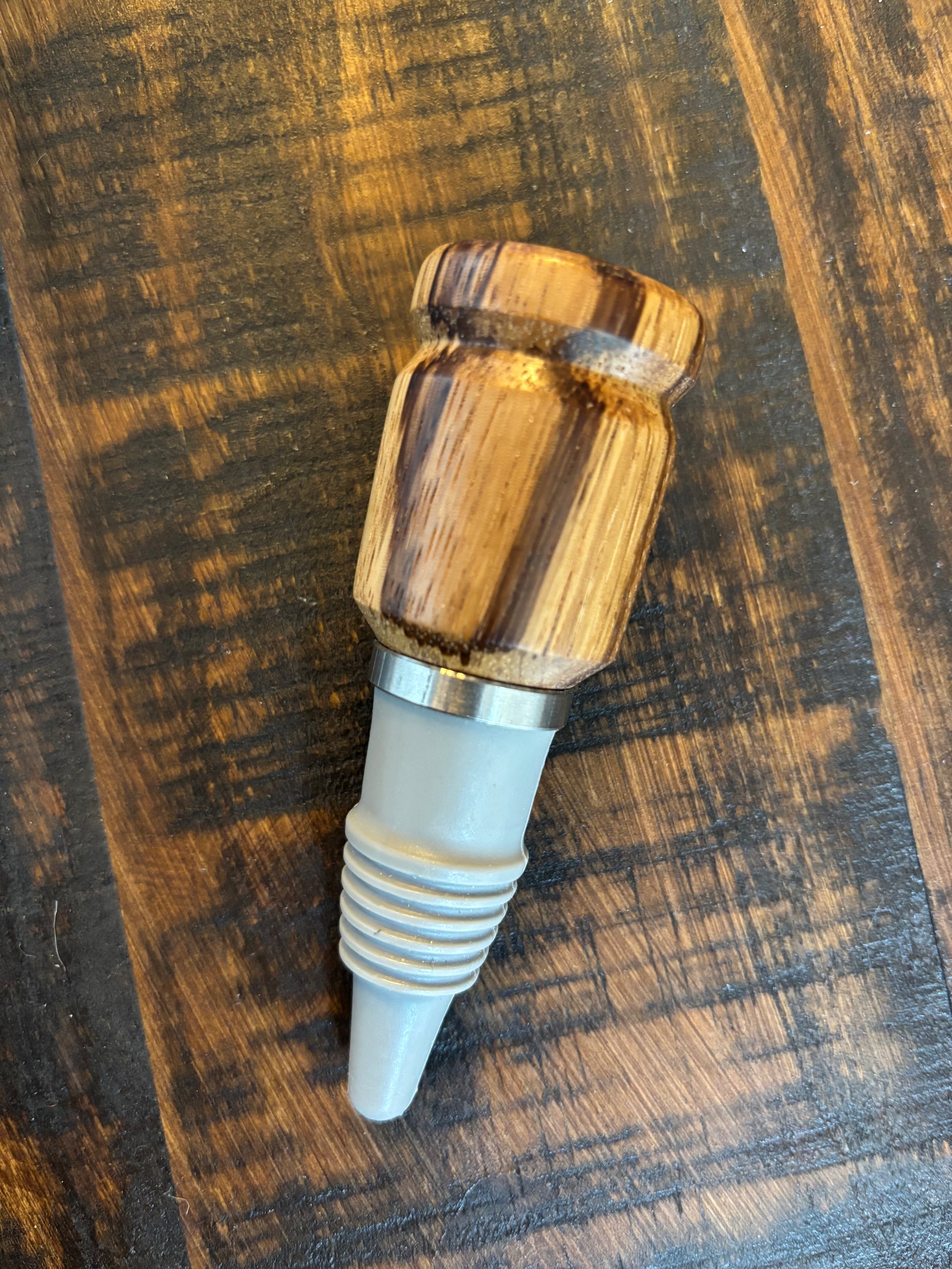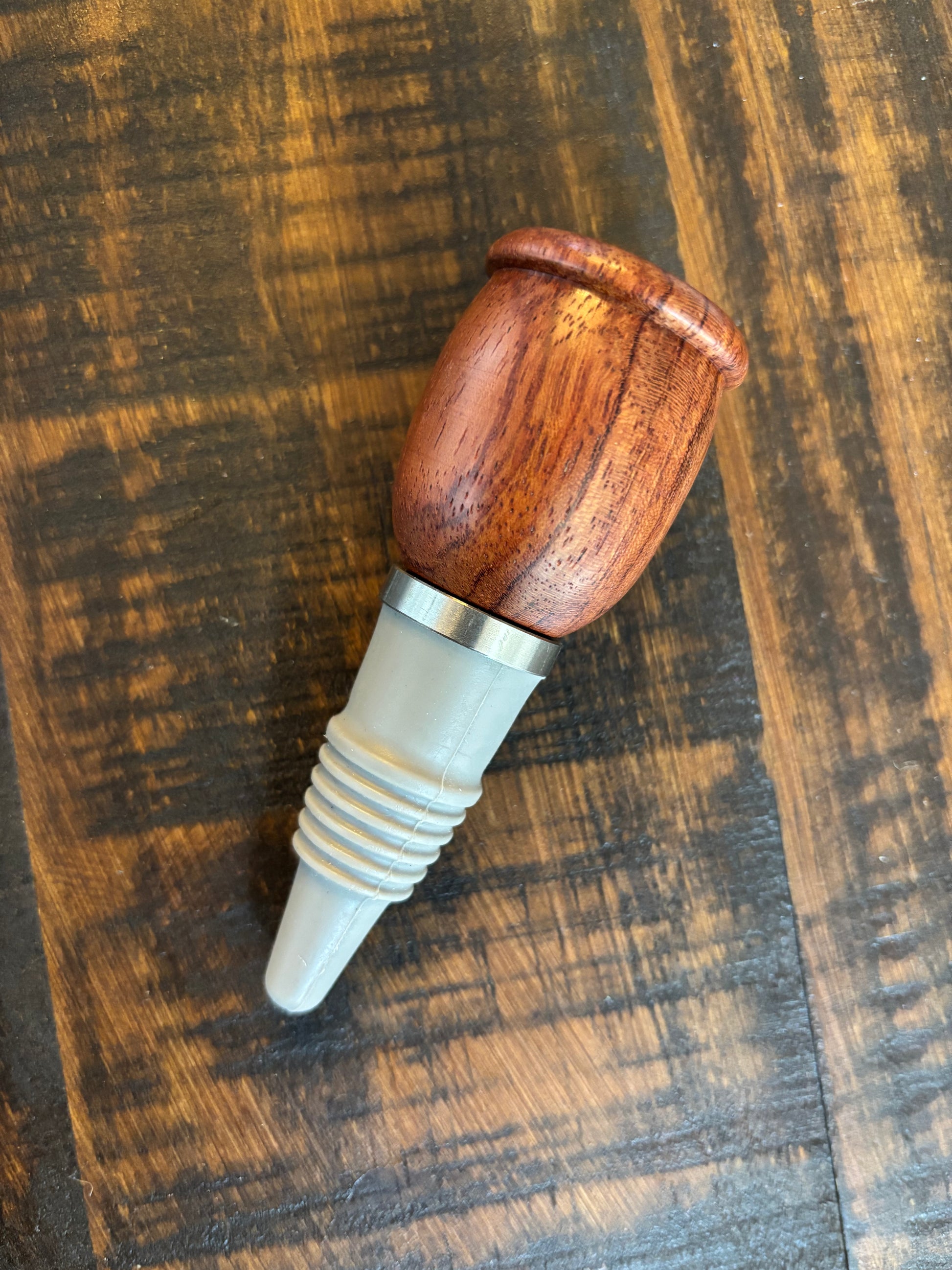 These custom wood bottle stoppers are sure to wow! Each bottle stopper is hand turned and one of a kind. The bottle stopper features a durable chrome plated finish and flexible silicone seal or an all gray silicon (see pictures for different styles). This stopper fits bottle necks 5/8" to 7/8" in diameter.